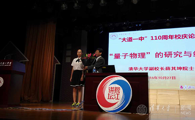 薛其坤在为中学生讲座。