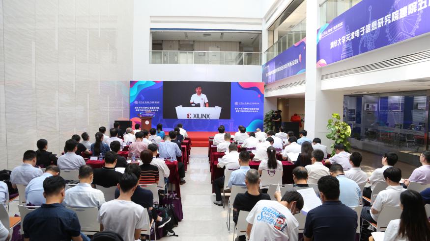 电子院常务副院长王瀚晟向与会嘉宾详细介绍了电子院五年来的建设成果。五年来,清华电子院已建成一套完整的科技创新体系,始终坚持以党建工作为引领,以制度创新、人才培养、平台建设为基础,以市场为导向,以资本为支撑,促进科研技术应用,服务天津经济发展。截至2020年7月,清华电子院共挖掘科创性项目115个,已通过论证项目71个,注册成立公司40个,目前已孵化一批诸如深鉴科技、湃方科技、华慧芯科技等新一代信息技术领军企业,为区域经济发展增添了创新活力。