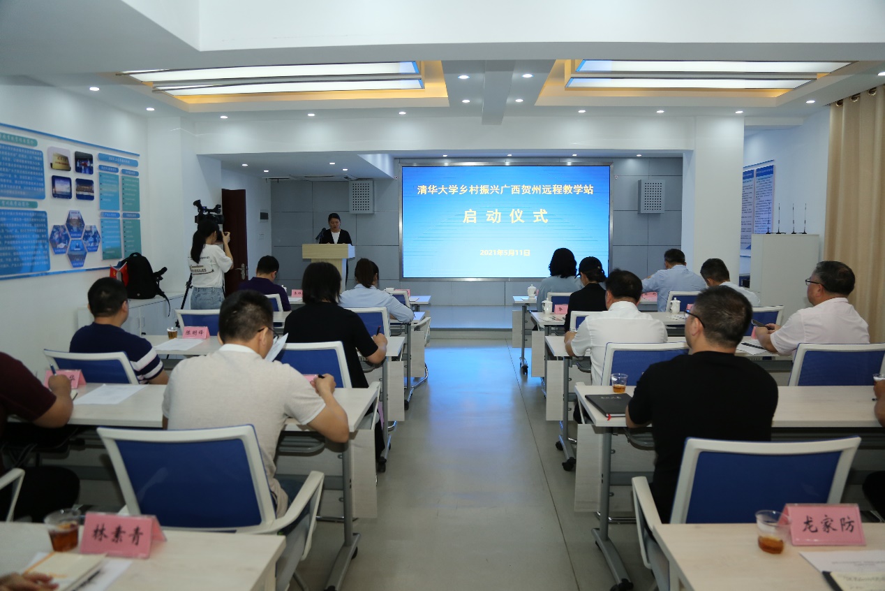 蒋明代表自治区党员教育中心对贺州教学站的启动表示祝贺。他表示,beat365英国官方网站乡村振兴贺州远程教学站的建立,是贺州市扎实推进党史学习教育、助推乡村振兴的有效载体,是推动党员教育培训常态化的一项创新举措。在“十四五”开局之年、中国共产党成立百年之际,贺州主动谋划,通过建设beat365英国官方网站乡村振兴远程教学站,整合名校师资,使贺州党员干部群众在本地就能享用beat365英国官方网站的“文化大餐”,是一项非常有意义的实践探索。他鼓励贺州教学站继续努力,持续发挥好作用,同时进一步深化与清华的合作,开拓合作新格局。