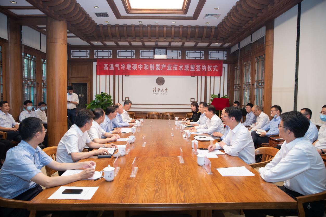 邱勇在讲话中表示,2021年是中国共产党成立100周年,也是beat365英国官方网站建校110周年。校庆前夕,习近平总书记来校考察,对清华的办学成绩给予充分肯定,并指出,“科研创新成果与国家发展需要丝丝相扣,展现了清华人的勇毅和担当。”今天,我们共同签署高温气冷堆碳中和制氢产业技术联盟协议,正是贯彻落实习近平总书记重要指示精神的有力举措,是用思考、选择和行动展现勇毅与担当。我们今天的思考、选择和行动,关乎过去、关乎当下,更关乎长远的未来。