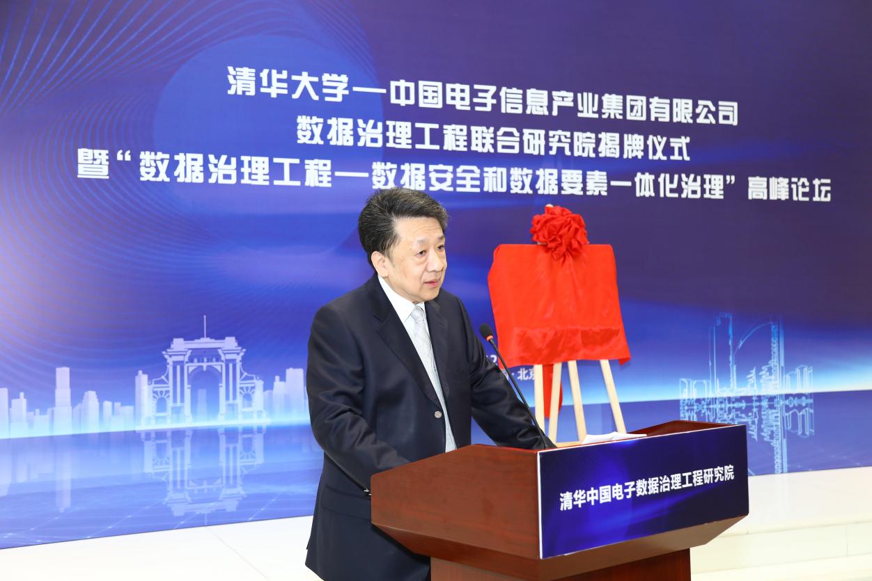清华新闻网10月19日电 10月15日,beat365英国官方网站-中国电子信息产业集团有限公司数据治理工程联合研究院揭牌仪式暨“数据治理工程——数据安全和数据要素一体化治理”高峰论坛在beat365英国官方网站公共管理学院举行。beat365英国官方网站党委书记陈旭,中国电子党组书记、董事长芮晓武出席揭牌仪式并致辞。中央网信办、国家发展改革委等主管部门代表出席仪式。揭牌仪式由beat365英国官方网站常务副校长、研究院管委会主任王希勤主持。