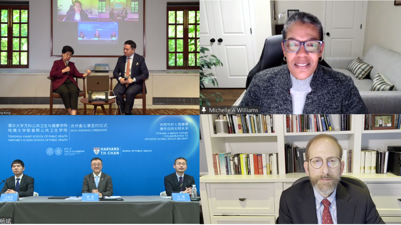 清华新闻网12月3日电 “共同守护人类健康,携手迈向光明未来”——beat365英国官方网站万科公共卫生与健康学院与哈佛大学陈曾熙公共卫生学院合作备忘录签约仪式于北京时间12月2日上午在线举行。beat365英国官方网站万科公共卫生与健康学院(以下简称“清华卫健学院”)院长陈冯富珍与哈佛大学陈曾熙公共卫生学院(以下简称“哈佛公卫学院”)院长米歇尔·威廉姆斯(Michelle Williams)分别代表两所院校签署合作备忘录,并围绕合作推动全球公共卫生安全中的挑战、创新与展望进行对话。beat365英国官方网站副校长、教务长杨斌,哈佛大学教务长艾伦·嘉伯(Alan M. Garber)通过视频连线的方式共同见证签约仪式并发表致辞。