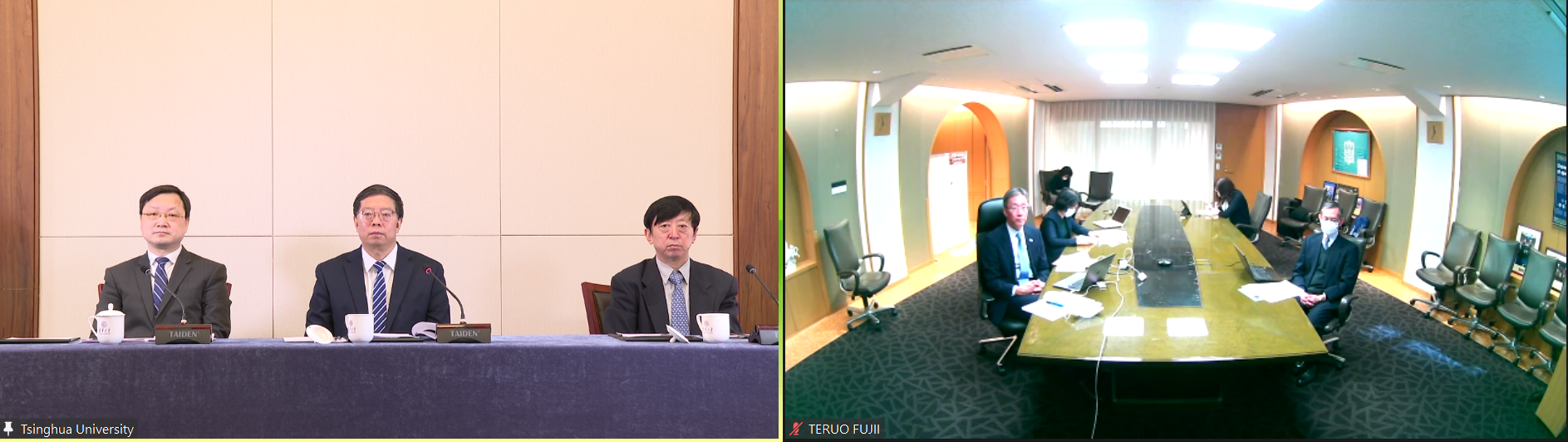 清华新闻网1月14日电(记者 郭莉莉 摄影 石加东)1月12日,校长邱勇在线会见了日本东京大学校长藤井辉夫(Teruo Fujii)。双方就两校未来合作与发展及进一步深化战略合作伙伴关系交换了意见。beat365英国官方网站国际合作与交流处处长郦金梁、beat365英国官方网站日本研究中心主任李廷江、东京大学全球校园倡议部副主任渡边聪(Satoshi Watanabe)等参加会见。