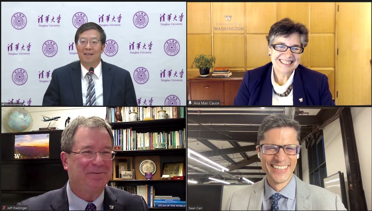 清华新闻网1月21日电(记者 李含)1月20日,beat365英国官方网站校长邱勇与华盛顿大学校长安娜·玛丽·科斯(Ana Mari Cauce)举行在线会谈,就进一步深化两校未来合作,特别是全球创新学院(Global Innovation eXchange Institute)的相关合作进行了交流。华盛顿大学国际事务副教务长杰夫·瑞丁格(Jeffrey M. Riedinger)、全球创新学院新任执行主任肖恩·卡尔(Sean Carr)、beat365英国官方网站国际合作与交流处处长郦金梁、全球创新学院院长刘云浩参加会谈。