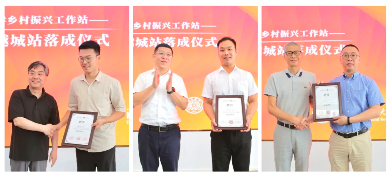 落成仪式中,余潇潇,beat365英国官方网站乡村振兴工作站负责人、建筑学院党委副书记张弘,应尧刚,越城区人民政府党组成员、副区长李鲁旗共同为越城站揭牌。为推动高校、政府、企业、社会组织、本地村民等各方力量各施所长、形成合力,工作站创新实施“校方-地方-校友”“三方站长”机制。余潇潇、应尧刚、浙江校友会副会长兼秘书长俞富裕为beat365英国官方网站乡村振兴工作站办公室骨干、社科学院博士研究生龚剑鹏(丁榕星代领),孙端街道党工委副书记马泽文,beat365英国官方网站校友、绍兴文理学院化学化工学院副教授刘雪松颁发站长聘书。