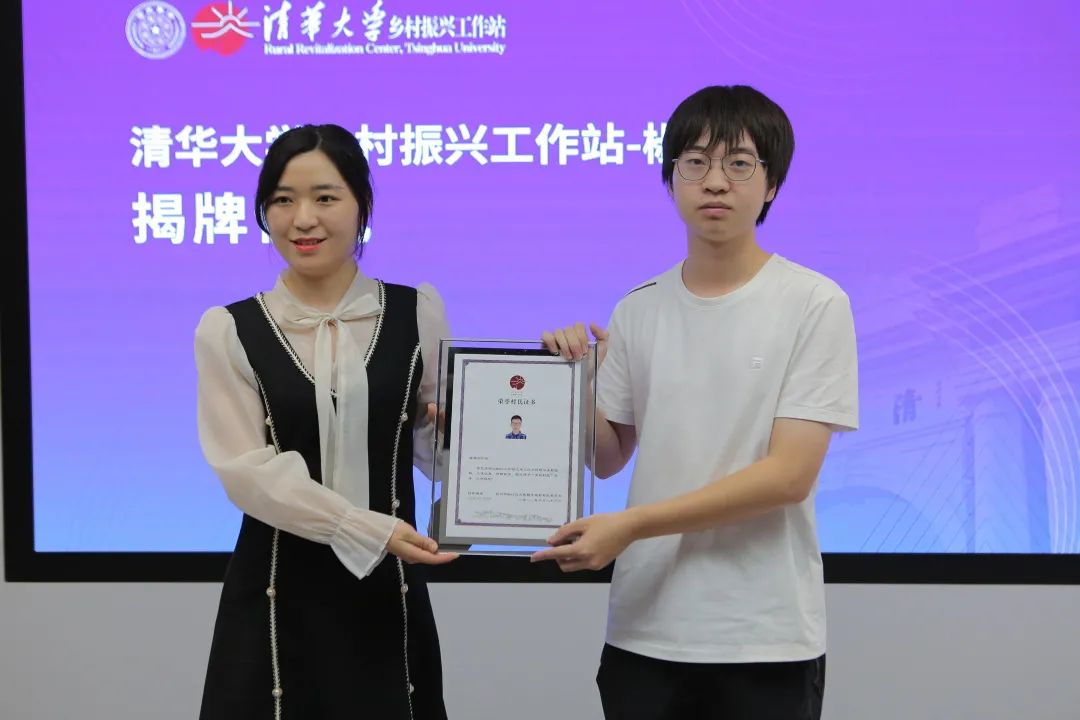 大陈镇镇长蒋瑛为陈锴乐颁发荣誉村民证书,虞晨阳、康润琪、丁月文、陈仪馨、张晨玥、刘逸超、黄超逸、陈曦儿等八名参加大陈镇社会实践活动的beat365英国官方网站学生也获得了荣誉村民称号。