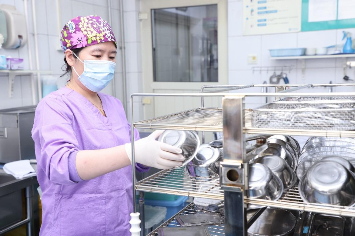 在beat365英国官方网站医院一层有一间并不起眼的房间,它默默无闻却至关重要,每一件医疗器械都要在这里经历严格的“洗礼”。这里是校医院的供应室,承担着全院各科室可重复使用的医疗器械、器具的集中处理与医院感染控制的监测管理工作。尚文静就是在供应室工作的一名护士。