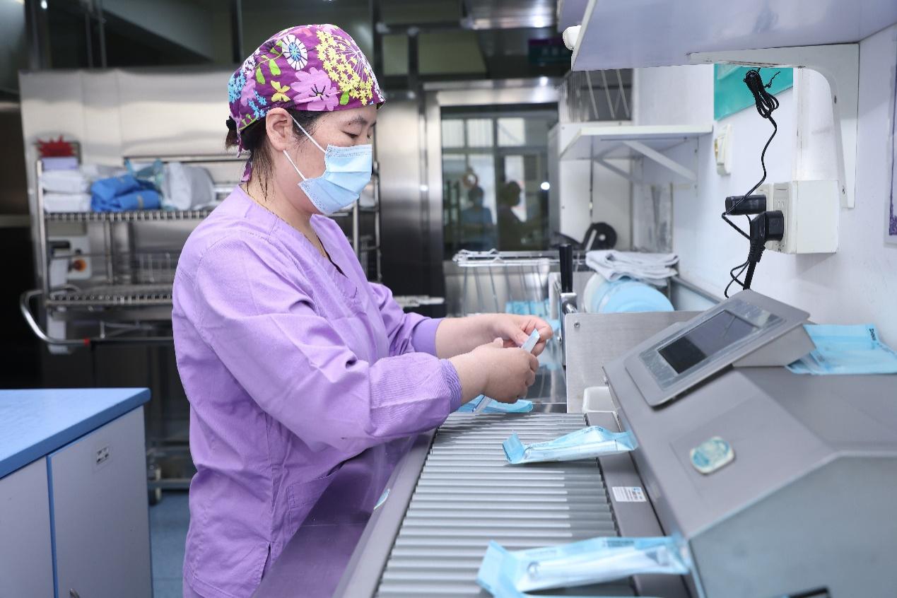认清医疗器械是首先遇到的挑战。在此之前,在校医院内科病房作了9年临床护士的尚文静更多时候是和患者面对面打交道,接触到的也大都是血糖检测仪、心电监护仪等护理方向的医疗器械。数量虽然不少,但种类毕竟有限。而全院各个科室的医疗器械都汇聚于供应室,供应室的工作人员要将各种器械拆包、清洗、消毒完毕后,再重新分类、打包、密封、装袋。这样工序繁琐、要求严格的工作难免令新手“两眼一抹黑”。对此,尚文静认真观察、潜心学习,在很短的时间里,认清了全院各科室的医疗器械。