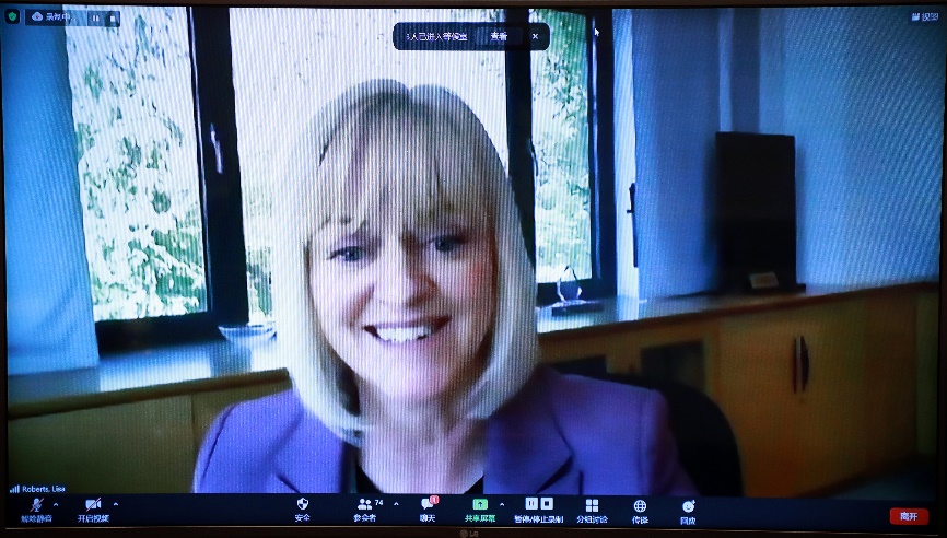 丽莎·罗伯茨在论坛开幕致辞中介绍了埃克塞特大学艺术与人文学科在应对疫情、引导世界疫后恢复中发挥的作用。丽莎•罗伯茨表示,人文学者在应对新冠疫情挑战、为社会创造正能量方面发挥了不可替代的作用。她坚信中英两国高校间的科研合作和学者间的学术交流在应对全球性挑战将发挥重要作用,并衷心期待各高校在中英高等教育人文联盟中结下的友谊能够历久弥新,为下一代学者带来人文学术和人文交流合作的奇妙际遇。