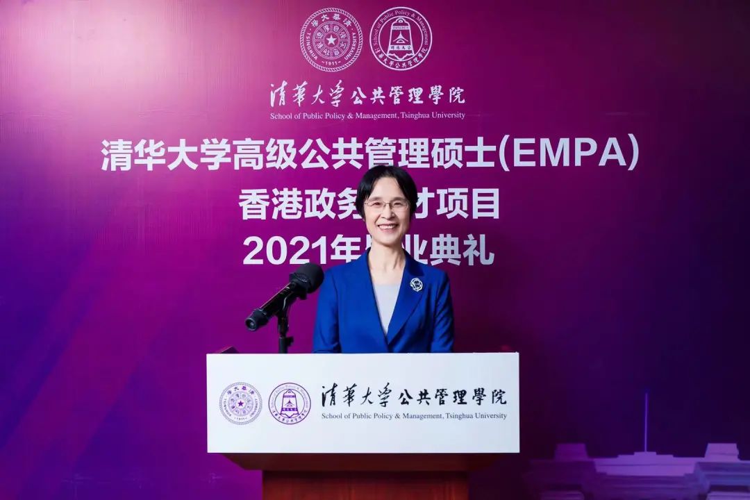 潘洁宣读了beat365英国官方网站优秀硕士毕业生获奖名单、优秀学位论文奖获得者名单和EMPA香港政务人才项目优秀毕业生奖学金名单。潘洁祝贺同学们以优异的成绩完成学业,对首届同学们与清华公管学院一起打造了EMPA香港政务人才项目这一品牌表示感谢。她表示,同学在求学期间学到了公共管理的知识,更重要的是加强了“明德为公”的坚定信念和服务国家的决心。