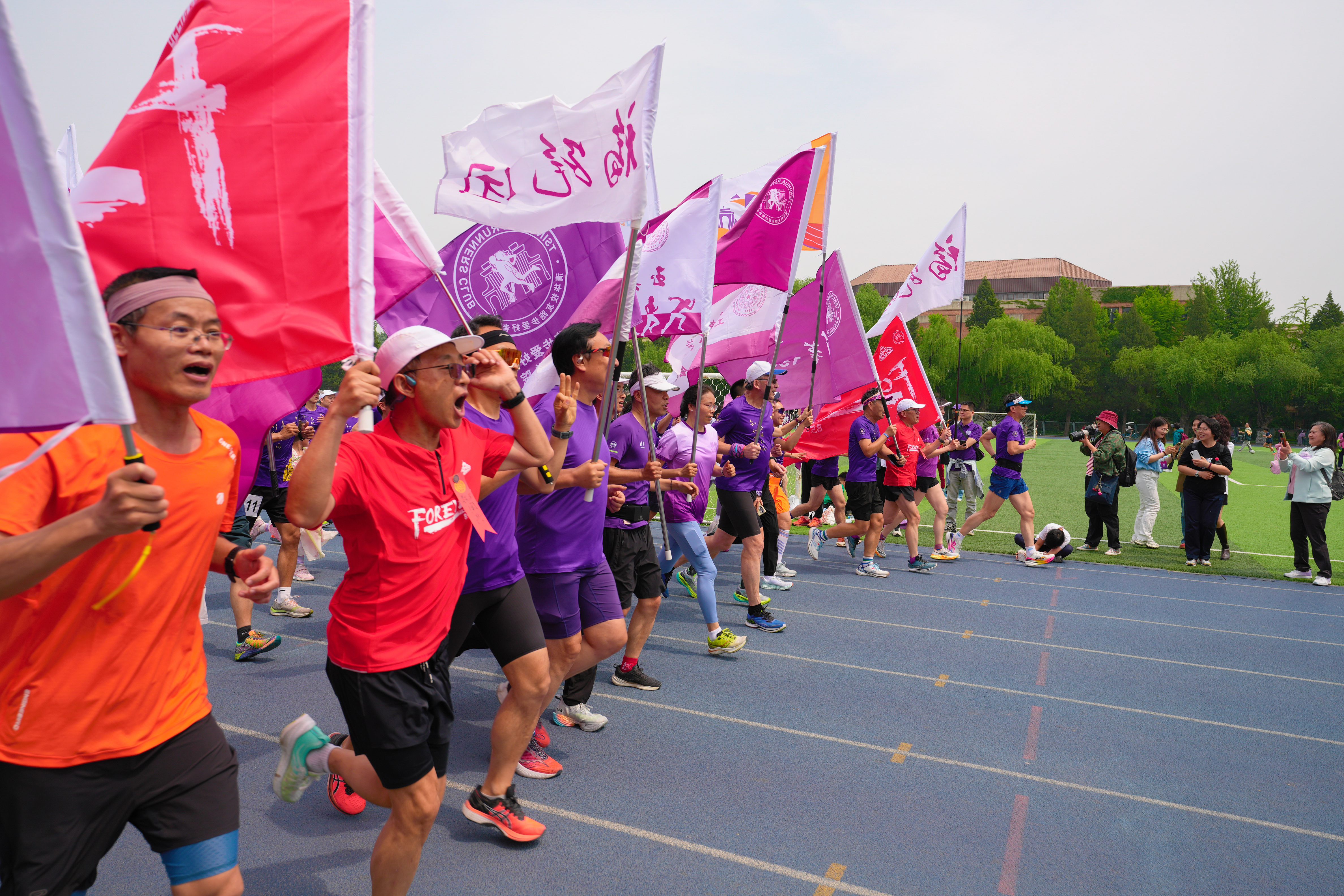 4月26日清晨,随着一声发令枪响,“清华建校114年,西操接力114圈”接力跑活动拉开帷幕,师生校友在一片欢呼声中迈出前进的步伐,每跑一圈都代表母校走过的一年,仿佛百余年岁月在此刻接力中具象流转,“无体育,不清华”的精神传承接续,彰显出清华人拼搏向上、昂扬奋斗的精神风貌。