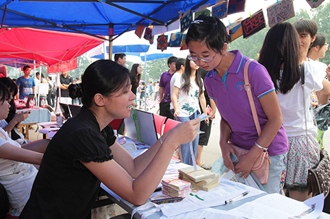 各个院系“花招”频出迎接新生。记者 苑洁 摄