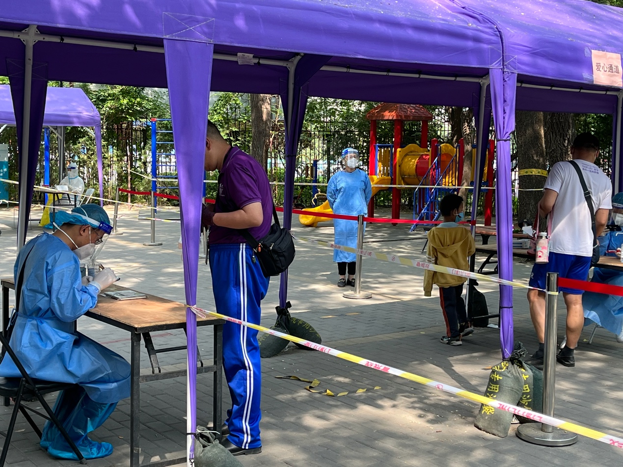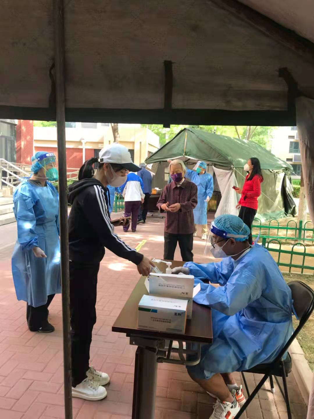 双清苑社区 “双报到”党员值守核酸检测现场