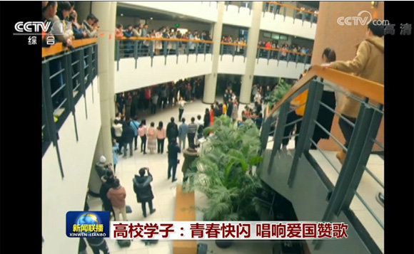 为尽可能不影响学校正常的教学秩序,快闪策划者之一、电机系2017级博士生黎晗东带着小伙伴们,提前到每间教室与上课的老师们进行沟通。“让我们感到十分温暖的是,所有老师都一致地表示了体谅,并非常支持我们的活动。活动开始后,12点15分下课的大多数老师同学都被快闪活动吸引,并随着歌曲的深入,自发加入一同唱歌,这令我们感到非常振奋。”