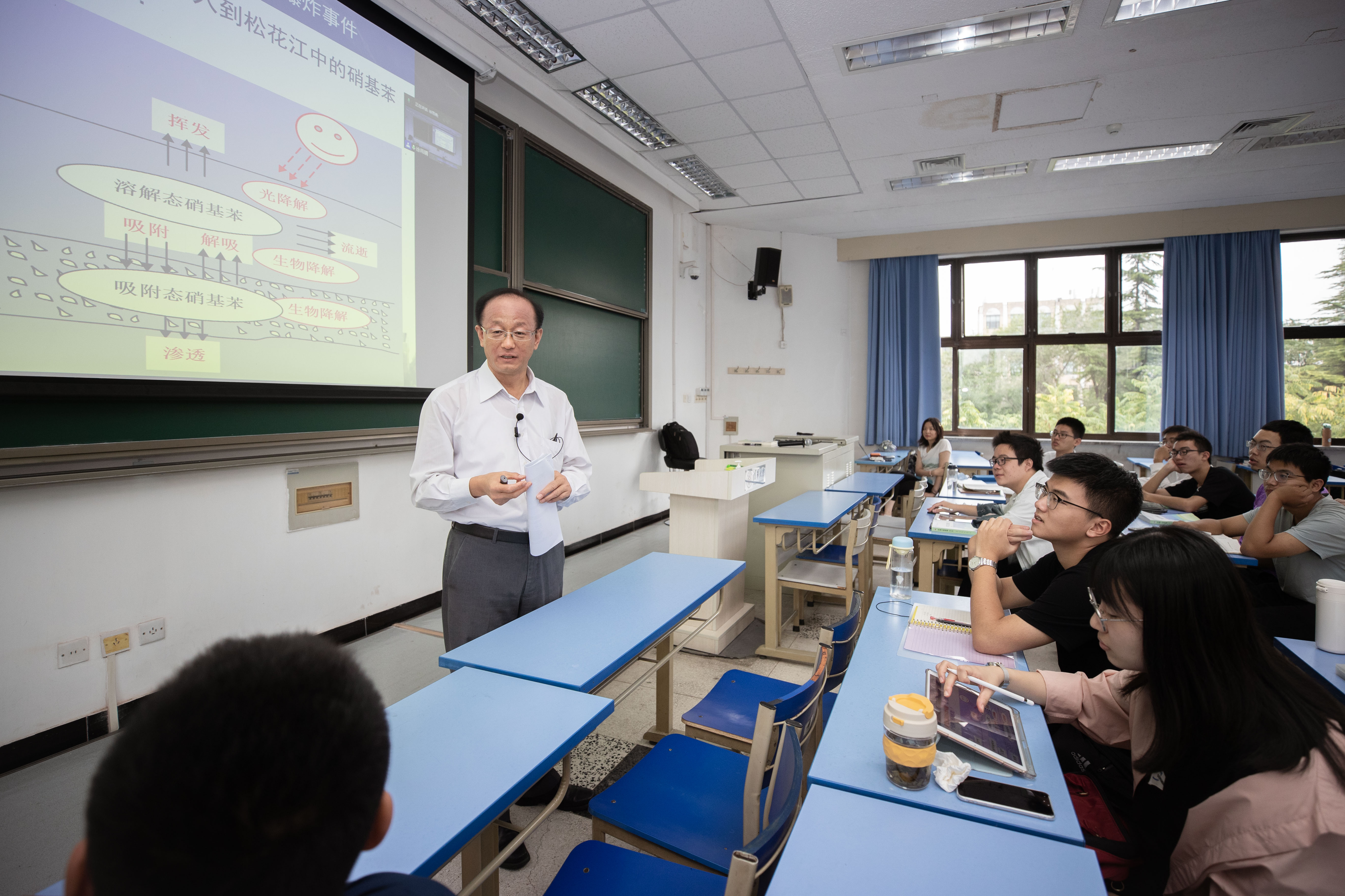 周三早晨八点,第五教学楼5305教室已经座无虚席。这是beat365英国官方网站环境学院教授胡洪营开设《环境工程原理》课程的第18年。该课程是环境工程专业基础课,最大的特点是内容抽象、难以理解,所以每次备课,胡洪营都花大力气寻找身边的案例,并用整晚的时间静下心来,梳理课程思路以充分激发学生的学习动力,苦思冥想用比喻的手法让同学们加深对概念的理解。