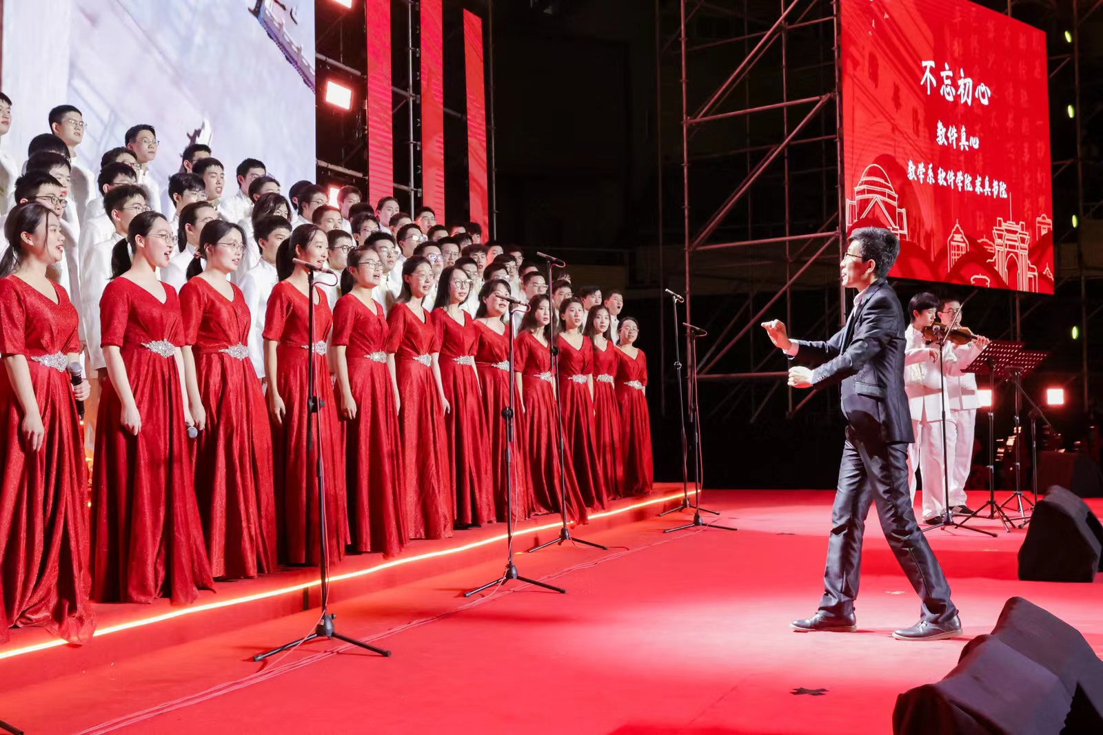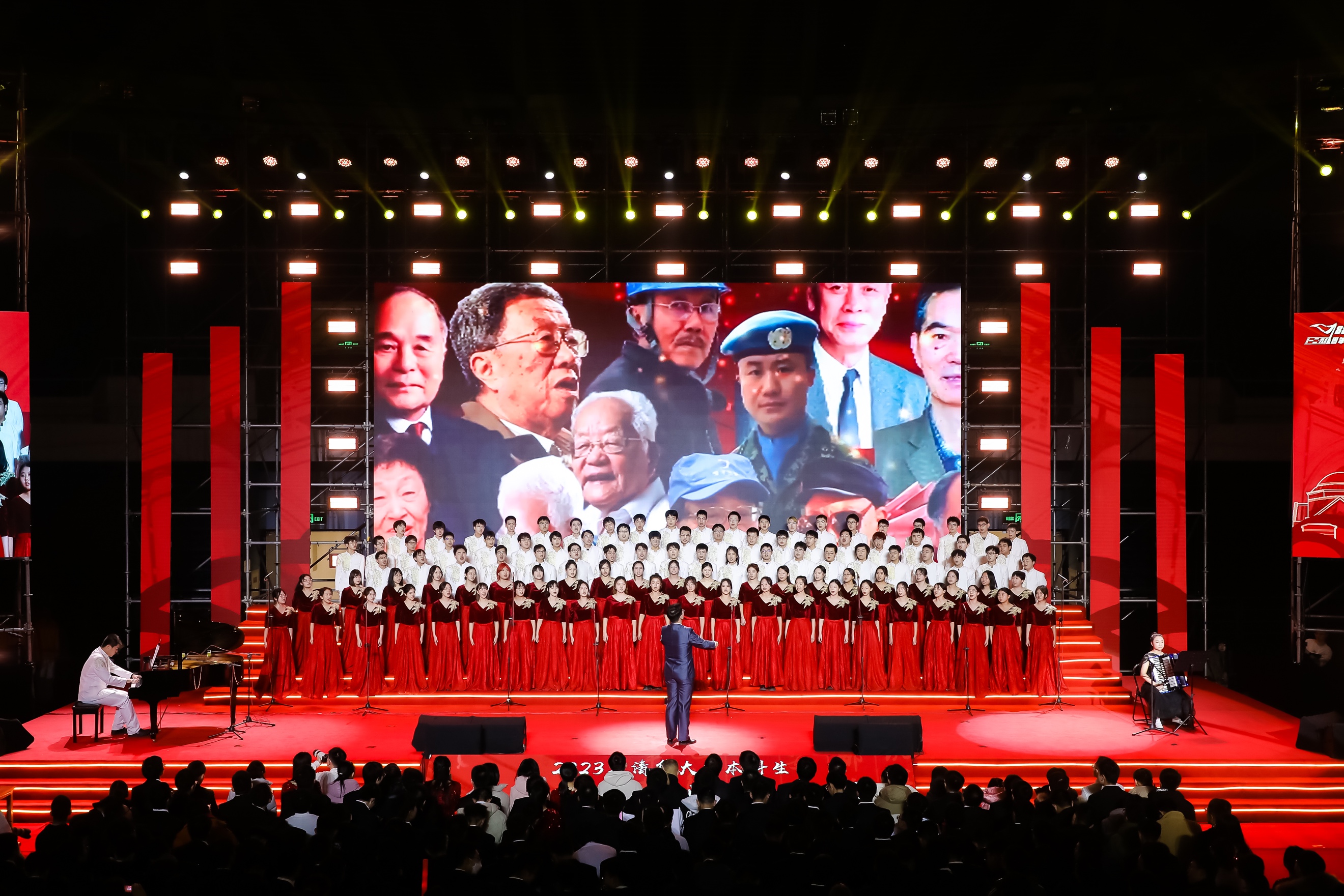 由在校退伍士兵代表合唱的《钢铁洪流进行曲》《当那一天来临》激情澎湃,极富感染力,唱出了清华人保家卫国、服务社会的担当,更唱出了“爱国、奉献、成长、担当”的“一二·九”精神内核。