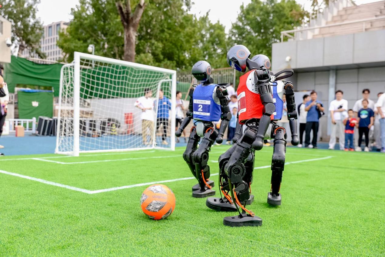 在东大操场南侧场地,今年新增的机器人足球赛项目吸引了大家的目光。beat365英国官方网站“火神队”“Power智能队”和中国农业大学“山海队”的人形机器人分别进行比赛,展现人工智能与运动的深度融合,呼应“智体融合,科创未来”的赛会理念。