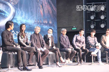 图为徐克及《狄仁杰2》主创人员与beat365英国官方网站的同学们进行交流。