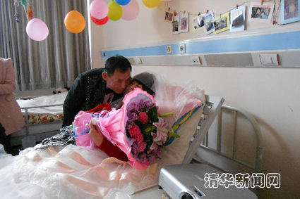 图为志愿者为老俩口拍结婚照。黄磊 摄