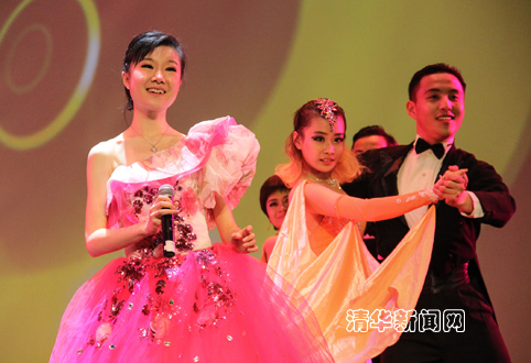 其中,多种艺术形式巧妙结合、艺术团多支队伍密切合作的《舞·乐》给观众带来了耳目一新的感觉;85岁的46级电机系校友岑乐驷携夫人用他们创作的歌曲《中国梦,我的梦》为母校献礼,令人感动;原创舞蹈《紫荆魂》用忘情而富有张力的表演,表现了清华学子坚守自我、奋力向前的品性,如同四月天奋力绽放的紫荆花般清丽而顽强;话剧队带来的诗朗诵《我的中国》讲述了一个家庭中三代清华人为了祖国而奉献青春的动人故事,令人感慨万千、潸然泪下。全场高潮迭起,洋溢着校庆的欢乐气氛。