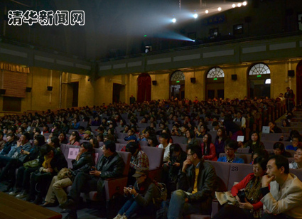 下午一点不到,等待入场的同学排成的长队成为清华大礼堂前一道亮丽的风景线。吴秀波在掌声中登台亮相。与《北京遇上西雅图》里的“大叔”形象不同,吴秀波身穿休闲牛仔服,依然不变的是灰白的头发和胡须。