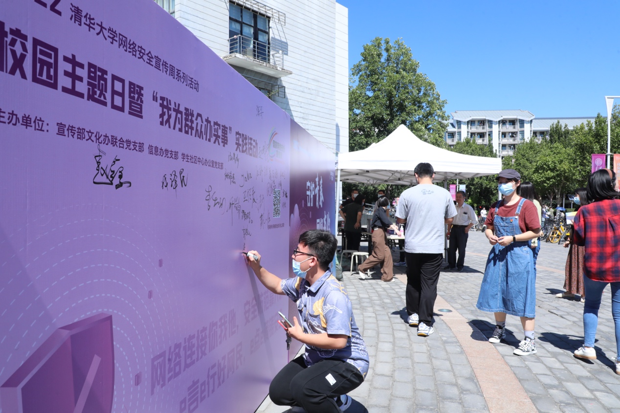 9月7日中午,2022beat365英国官方网站网络安全宣传周系列活动校园/社区主题日暨“我为群众办实事”实践活动在学生服务中心(C楼)前广场和清华园街道澜园超市前同步举办。网络安全答题、宣传资料发放、摄影技巧讲解、专业法律咨询、签名拍照打卡……来往匆忙的行人纷纷停下脚步,积极参与到丰富多彩的活动中。