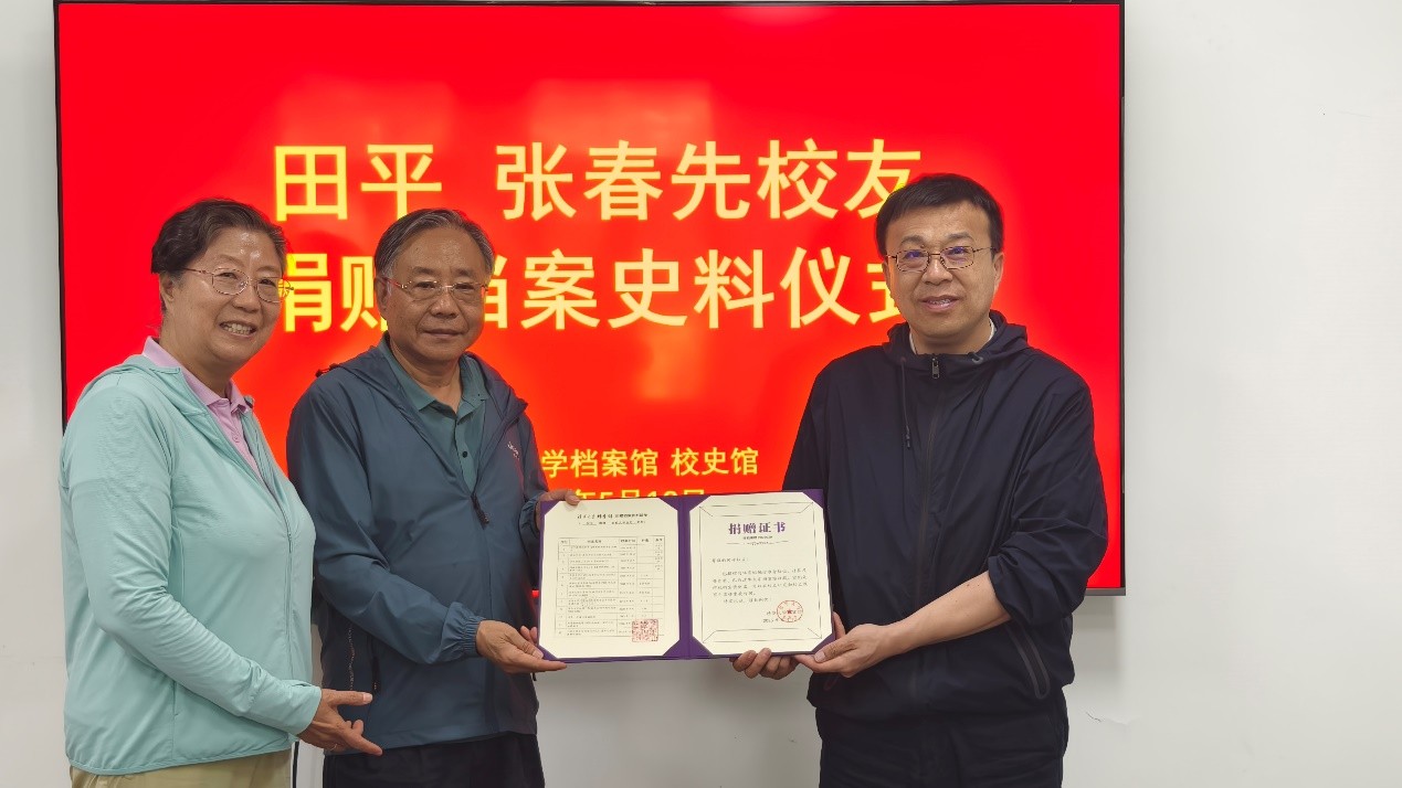 档案馆馆长、校史馆馆长孙海涛为田平、张春先颁发捐赠证书