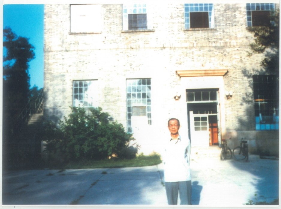 1989年校庆日,与返校校友合影后,同事罗光福送张任回家