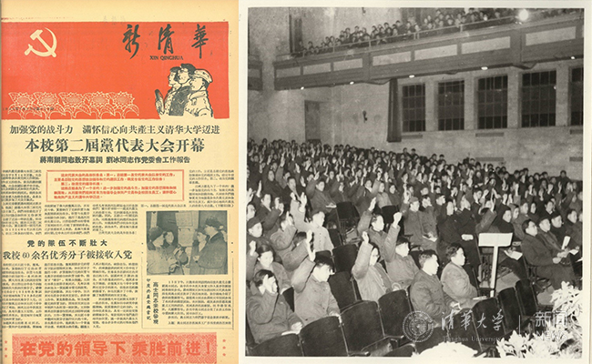 《新清华》关于第二次党代会开幕的报道。(左图)
