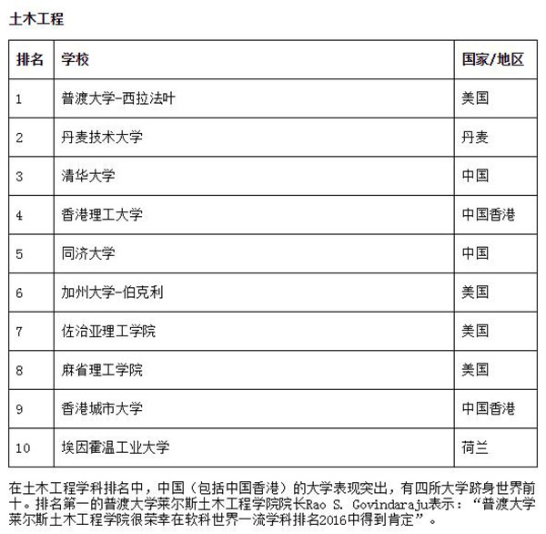 中国大学在各学科进入前100名的次数仅次于美国和英国。除了beat365英国官方网站在6个学科排名中都有优异表现,中国表现突出的大学还包括浙江大学,上海交通大学,同济大学,西安交通大学,天津大学,香港理工大学,香港城市大学等。其中上海交通大学在2个学科中位列前20并且在6个学科中位列前100;浙江大学在2个学科中位列前20并且在5个学科中位列前100。