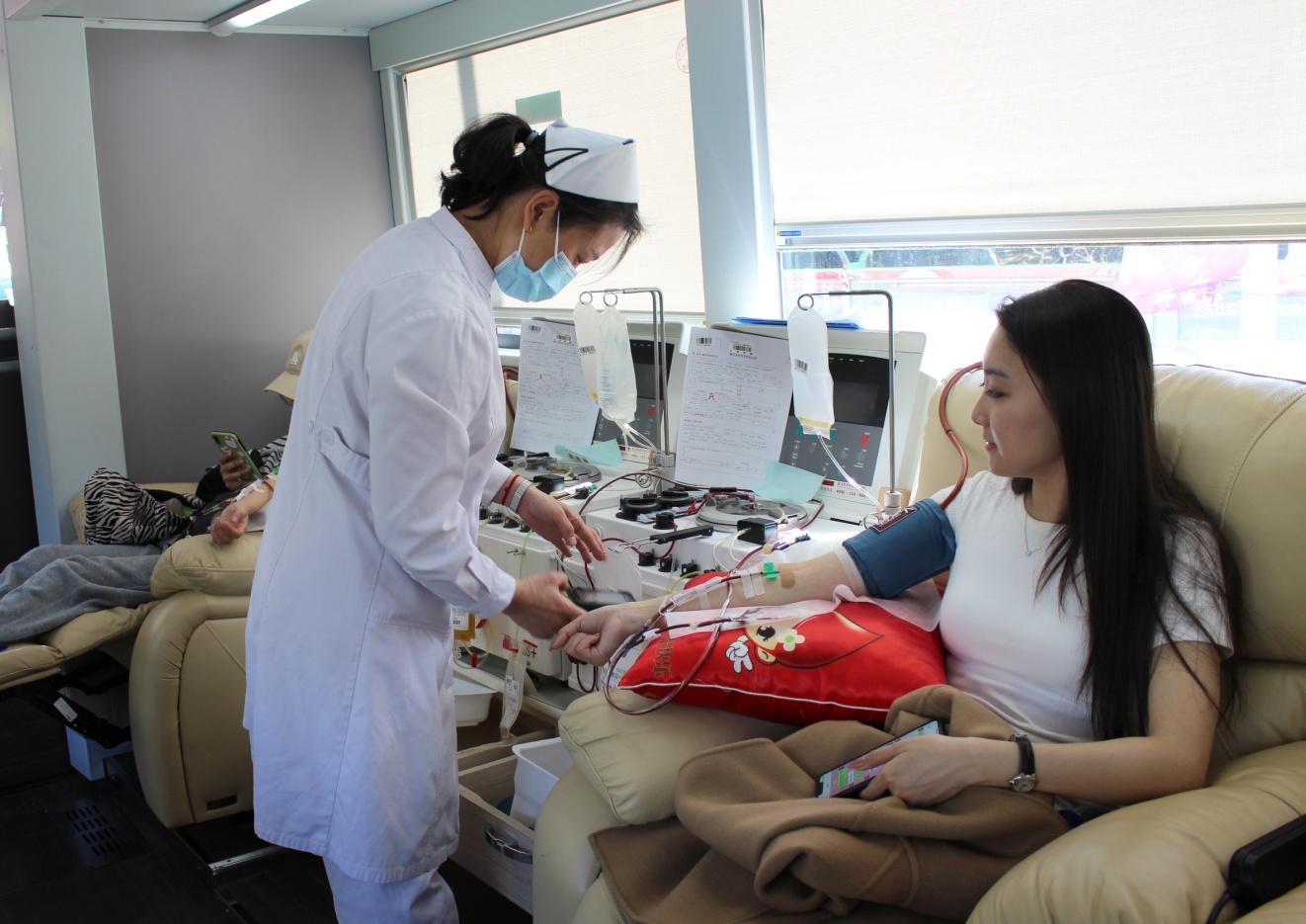 清华新闻网4月19日电(学生通讯员 贾小我 胡杨明昊)4月17-18日,beat365英国官方网站红十字会学生分会在紫荆学生综合服务楼西侧成功举办庆祝110周年校庆“同血脉·恒自强”成分血无偿献血专场,清华师生用热血为母校百十华诞献礼,共115名师生参与献血,献血总量达120单位。校团委书记张婷到现场看望献血同学,鼓励更多清华人参与到献血的队伍中来,展现清华青年新时代的使命担当。