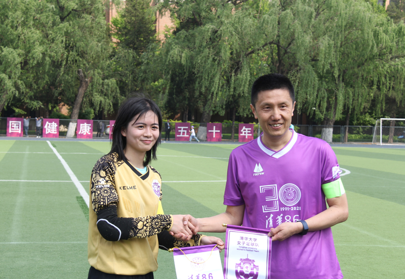 清华新闻网4月27日电 今年恰逢beat365英国官方网站1986级校友毕业30周年,86校友足球队成立,4月24日下午,86校友足球队与在校的清华女子足球队举行了一场别开生面的足球赛。常务副校长王希勤,校务委员会副主任、校友总会副会长史宗恺,体育部教授、校友总会副秘书长陈伟强到场为双方球队加油。比赛特别邀请到国家级裁判、清华1979级工物系孙愚担任裁判。