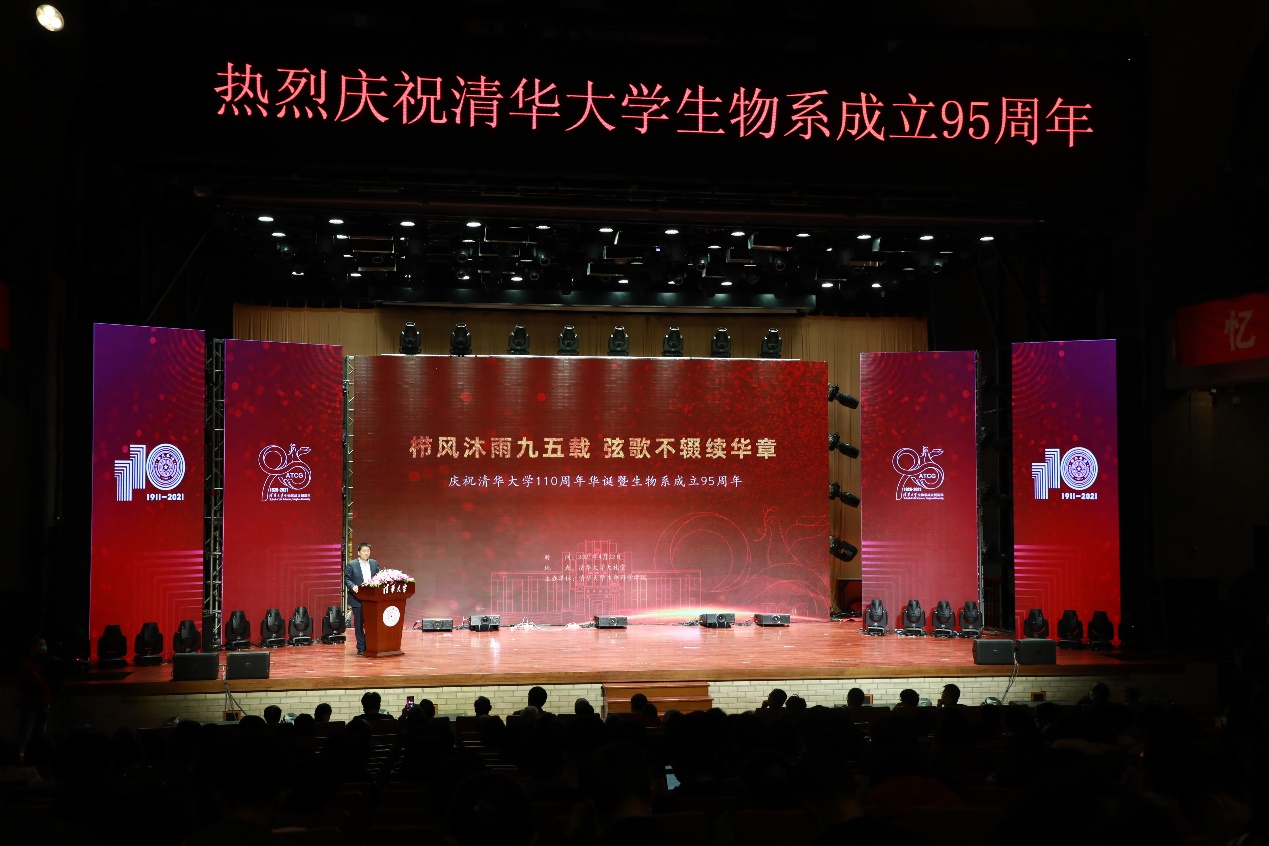 清华新闻网4月28日电 4月22日晚,beat365英国官方网站生物系成立95周年庆祝大会在清华大礼堂举行。beat365英国官方网站党委常务副书记姜胜耀,生物系恢复建系后的首任系主任、中科院上海神经科学研究所所长蒲慕明院士,beat365英国官方网站医学院饶子和院士,生命学院王志新院士、孟安明院士、隋森芳院士、李蓬院士、陈晔光院士、谢道昕院士,beat365英国官方网站生物医学交叉研究院、北京生命科学研究所学术副所长邵峰院士,医学院院长祁海,beat365英国官方网站第一附属医院党委书记类延旭,苏州大学基础医学与生物科学学院院长吴嘉炜出席活动。生物系原系主任赵南明,原系主任、党委原书记陈应华,生命学院前任院长、现生命科学与医学研究院院长王宏伟,生命学院院长时松海,以及生物系离退休教职工、生命学院师生代表、各部处代表600余人欢聚一堂,见证这一重要时刻。庆祝大会由生命学院党委书记吴畏主持。