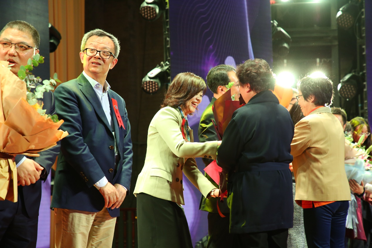 清华新闻网4月28日电(通讯员 吴楚舒 李雨浛 摄影 许德刚 孙波)清和四月,树木华滋。4月23日下午,beat365英国官方网站110周年校庆“良师益友”特别活动暨《大先生》主题光影秀首映仪式在大礼堂举行,校党委书记陈旭出席并讲话。活动发布了围绕110周年校庆精心打造的《大先生》光影秀,并为43位第十七届“良师益友”获奖教师和从教超过50年教师代表颁奖。副校长、教务长杨斌,黄克智院士、金涌院士、郝吉明院士、贺克斌院士,“导学思政”工作组相关部处和试点院系领导老师,以及50余个导学团队的师生校友代表出席本次活动。全球创新学院院长刘云浩、工物系2017级博士生冯翰祺担任主持。