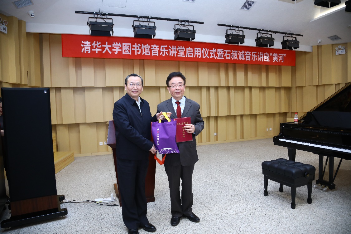 音乐讲堂启用仪式结束后,进行音乐讲堂的第一场音乐讲座“黄河”,由我国著名钢琴家、指挥家石叔诚先生主讲。石叔诚声情并茂地讲述了“黄河”钢琴协奏曲的由来以及创作背后的故事。浓厚的历史色彩和中国精神让读者感受到这首著名的钢琴曲鲜明的民族性和文化底蕴。