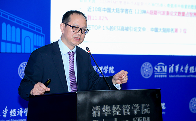 清华经管学院院长、弗里曼讲席教授白重恩从学院学科概况、师资队伍、科学研究、社会服务、人才培养等方面介绍了经管学院学科建设基本情况。