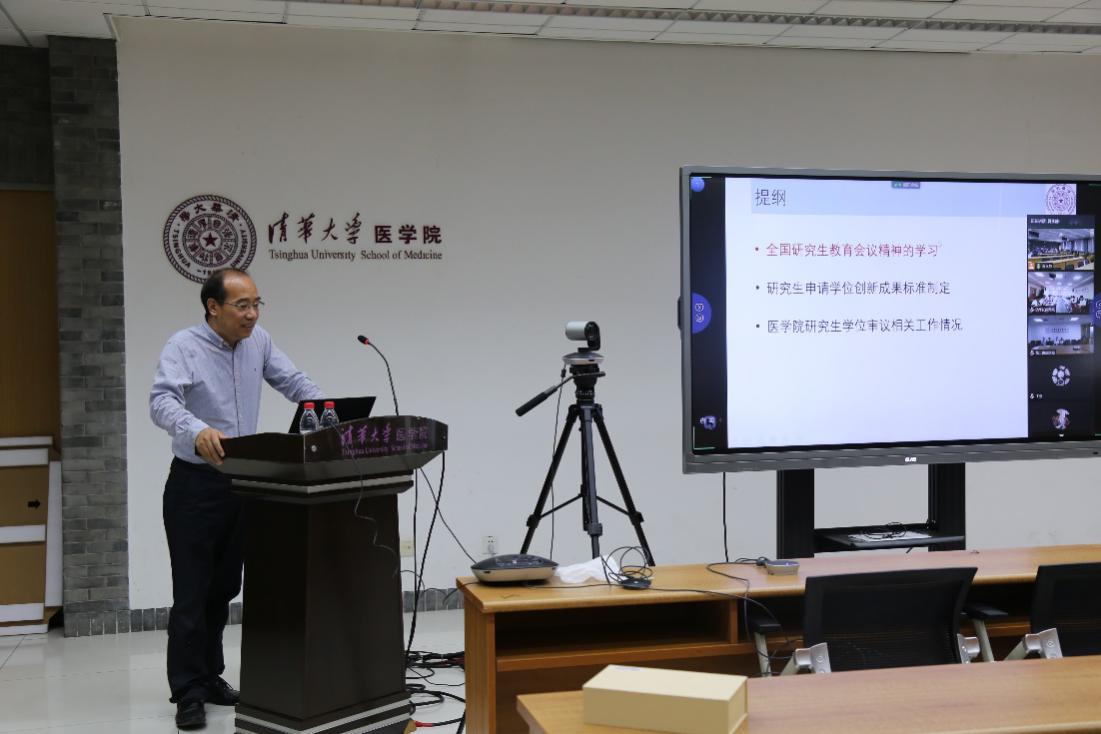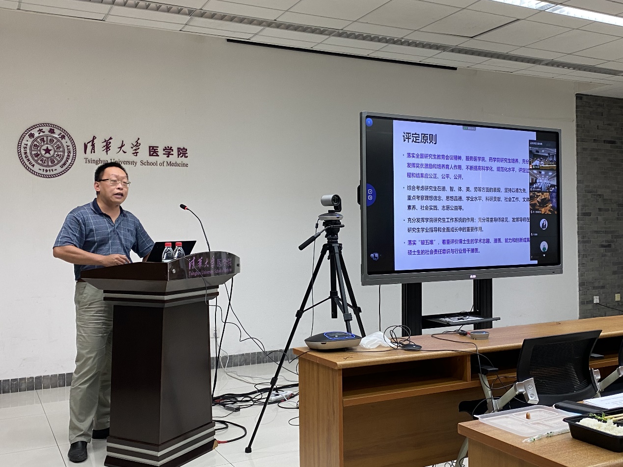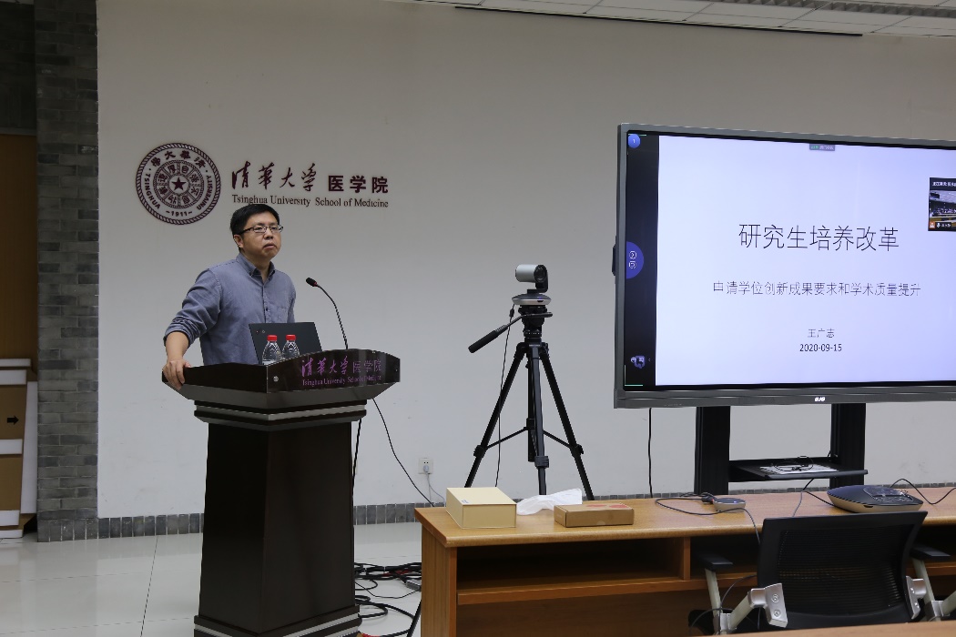 清华新闻网9月23日电 9月15日,医学院-药学院在医学科学楼举行研究生教育改革研讨会。医学、生物医学学位评定分委员会主席王广志教授,医学院研究生教学主管李海涛教授,药学院副院长钱锋副教授,医学院-药学院各专业的研究生指导教师,医学院-药学院研工组和教务办公室成员,关心研究生教学工作的其他教师以及医学院、药学院部分研究生代表共60余人参加会议。同时,本次会议采用融合式教学技术,北京清华长庚医院教学副院长张萍教授等28位教师和其他不能参加线下会议的医学院-药学院教师在线上参会。会议由医学院教务办公室主任夏永静主持。
