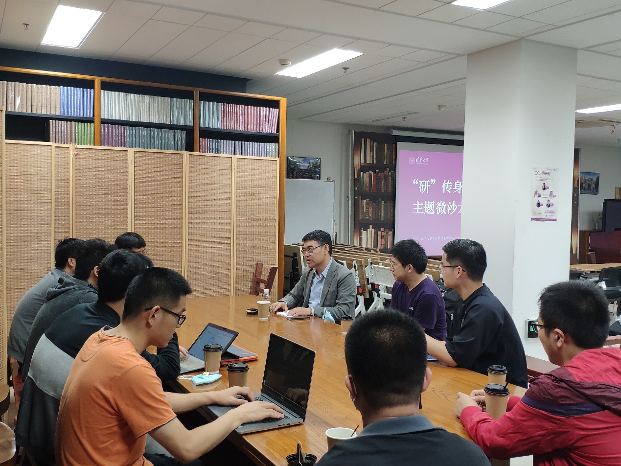 院系学术名师们在微沙龙上与同学们分享了研究生教育的经验与心得。建筑学院教师朱文一与同学们交流了研究兴趣与科研成果之间的关系,鼓励同学们保持一颗好奇心,做出满足自己兴趣、符合学术要求的研究,并希望同学们坚持自己的兴趣,保持前进的动力。精仪系教师张建伟与同学们分享了调解心理压力的方法,他表示积极面对会更容易克服困难,自我封闭只会更加焦虑。自动化系教师胡坚明在“如何做一名优秀且快乐的研究生”主题微沙龙上生动地讲解了自己的科研经历,给出“多读文献、多交流、多实践”的三步走上手科研的方法。