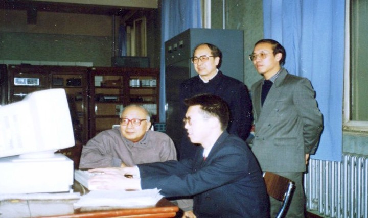 1992年,童诗白教授指导博士研究生修林成,旁立者为韩英铎教授、胡东成教授
