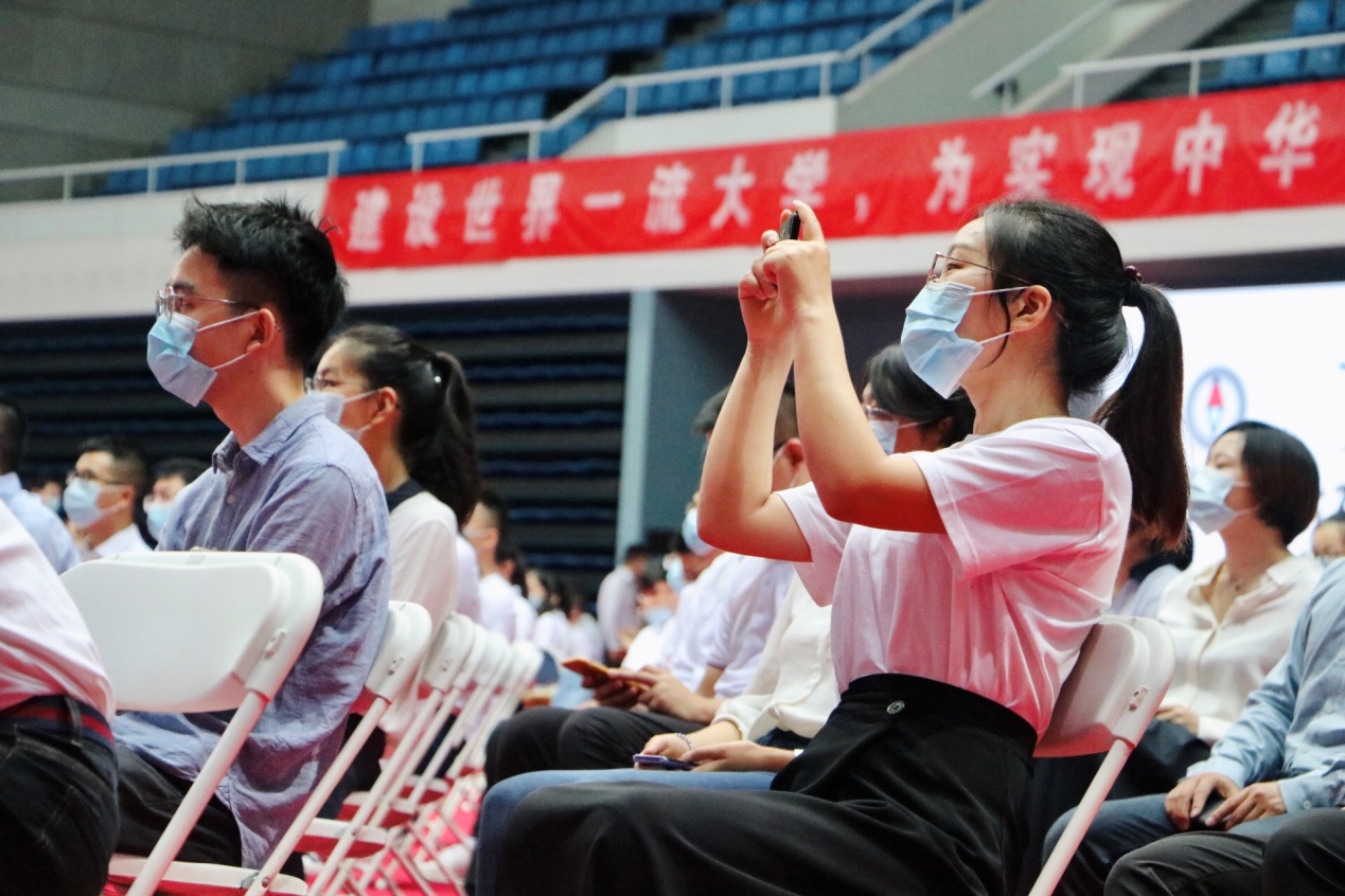 典礼上,校长邱勇发表题为“给生命以温暖,为理想而躬行”的讲话;生命学院教授王新泉代表全体教师发言;校研究生会主席、航天航空学院博士生林景,深圳国际研究生院硕士生杨影分别代表在校研究生和新生发言。校党委书记陈旭为新生代表佩戴校徽。副校长、教务长杨斌主持典礼。