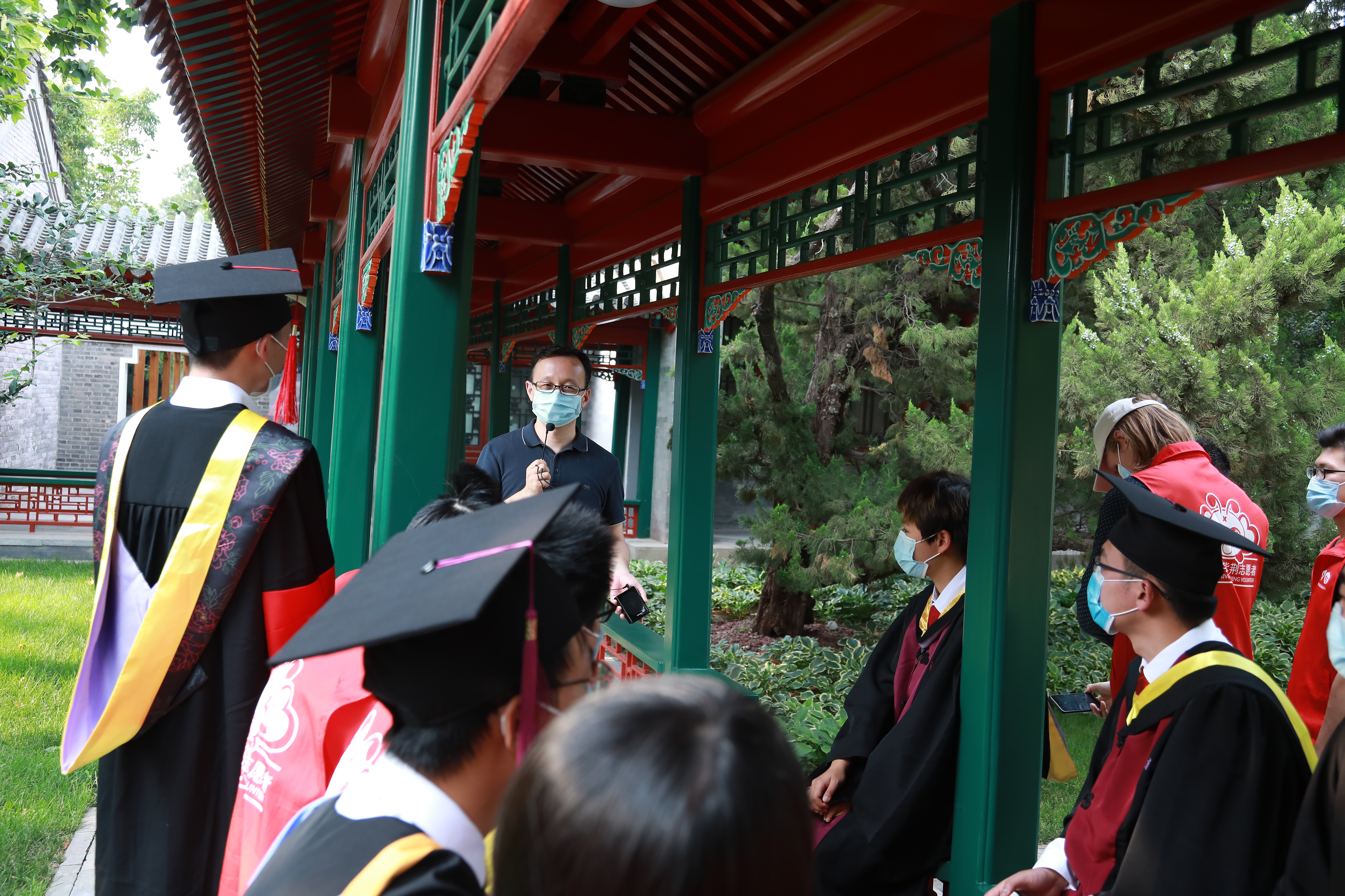 白本锋老师说:“今天我志愿为辛勤的志愿者们服务一次。”他从工字厅的历史讲到建筑物的结构,又细数这里住过的名士大师,延展到在工字厅诞生的清华“智慧”,同学们直呼这是毕业前一堂最生动的清华历史与清华精神解析课。