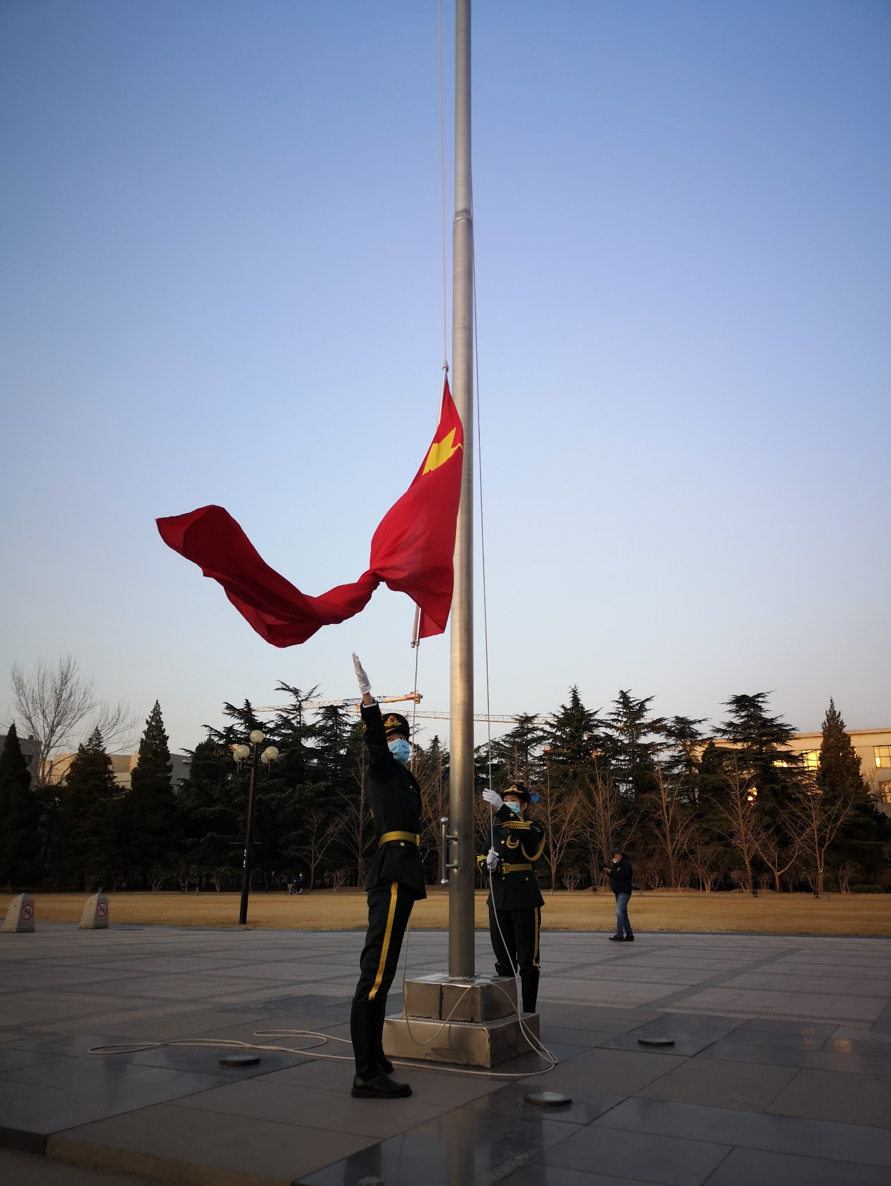 依照《中华人民共和国国旗法》的规定和学校的安排,除寒假假期外,每天都升降国旗,这一工作平时是由国旗仪仗队的同学们完成的。国旗仪仗队目前有六十余名队员,全队分为七组,分别负责周一到周日的升降旗。受疫情影响,在队队员们都无法返校。曾在队两年半的材料学院大四学生经求是寒假期间没有离校,此时,他承担起了这支队伍的责任。为了保证国旗的正常升降,经求是几乎每天都会来到主楼前执行升旗任务或作指导。在这段时间里,他执行任务的次数甚至快赶上了在队期间的总次数,对此他无怨无悔——他始终认为,自己作为一名仪仗队员,应当在这种时候站出来。