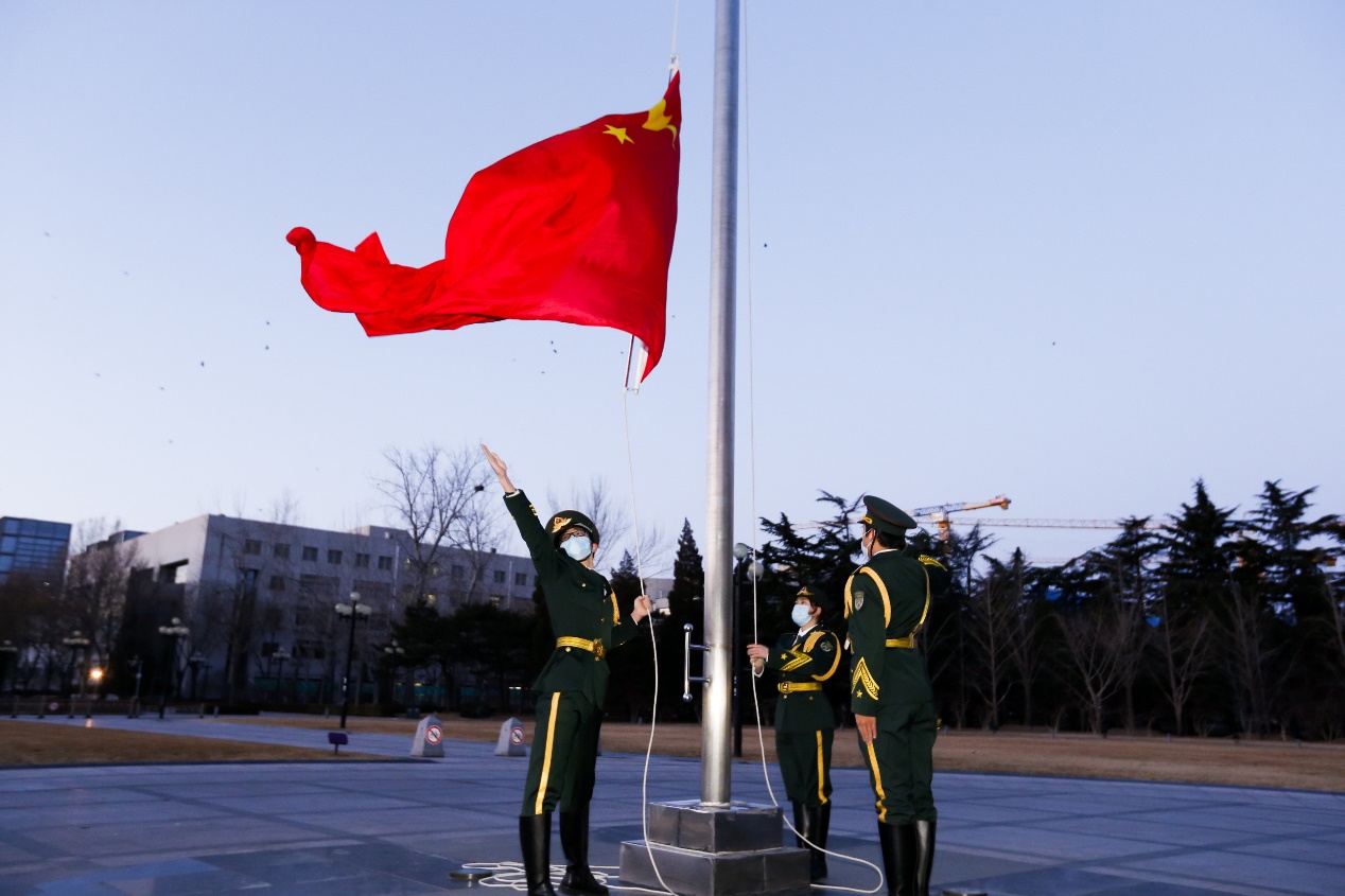 2月17日6点,三位同学早早赶到主楼,进行最后的准备和练习。6点45分,三名同学从主楼出发,行进至旗台,伴随着高亢激昂的国歌,将五星红旗冉冉升起。在全校在线开课的第一天,国旗照常升起。“虽然因为特殊情况,今年只有我们三个人,但仪式的意义是不减的。我们希望通过这样的行动,展现爱国奉献、追求卓越的清华精神。”经求是在升旗仪式后说,“请同学们放心,在园子里的几位同学一定会像往常一样守护好国旗。”