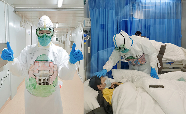 图片中的医生正是章薇。她是医学实验班本学期“医学生理学”课程教师之一,原计划是为学生讲授呼吸系统中枢神经调控的相关章节。在新冠肺炎疫情全球蔓延扩散之际,首都北京的境外输入压力与日俱增,时隔17年后,北京小汤山医院再次启用。一场突如其来的派驻任务,改变了她原有的工作安排,3月19日,她被医院派往小汤山定点医院参加支援工作。