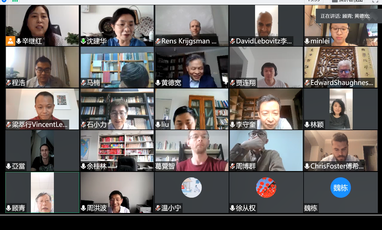 参与清华简校释和英译国际合作项目的四方团队视频会议截屏
