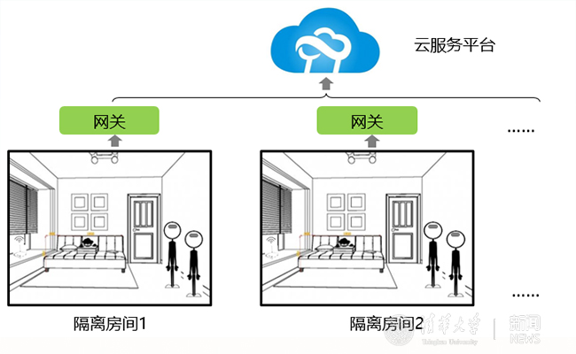 “自动隔离监测系统”采用可贴身佩戴的体温传感器,轻巧方便,可以佩戴于额头或腋下等部位,可实时对体温进行采集。采集的数据通过网关或手机传至云服务平台进行数据整合和数据可视化,当出现数据不正常或出现被隔离者离开监测区域时,系统都会进行报警。对于在隔离期内生理数据正常的人员,可以在一定时间之内不用重复测量,避免重复检查。