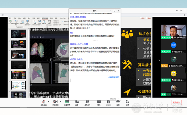 本次活动吸引了100余名校内外师生参加,同学们收获良多。精仪系2019级博士生张利说:“王博师兄所在的团队结合自身图像处理领域知识,参与研发新冠肺炎智能诊断系统,大大节约了CT诊断时间,为疫情防控实实在在地贡献了力量。王博师兄这次的成果是长期积累后的快速转化,这让我想起了一个词——‘厚积薄发’。我们应该向王博师兄学习,只有平时多注意积累,才能在祖国需要的时候,担当起自己的责任,贡献自己的力量。