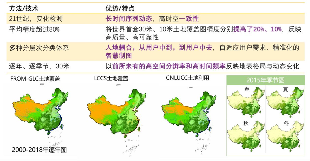 图2 首套中国2000-2018年间逐季节土地覆盖和逐年土地利用图