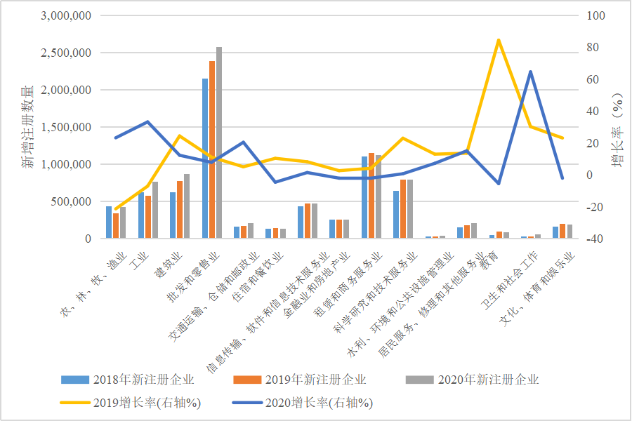 图5 不同行业的新增注册企业数量增长率变化(2020-2019)