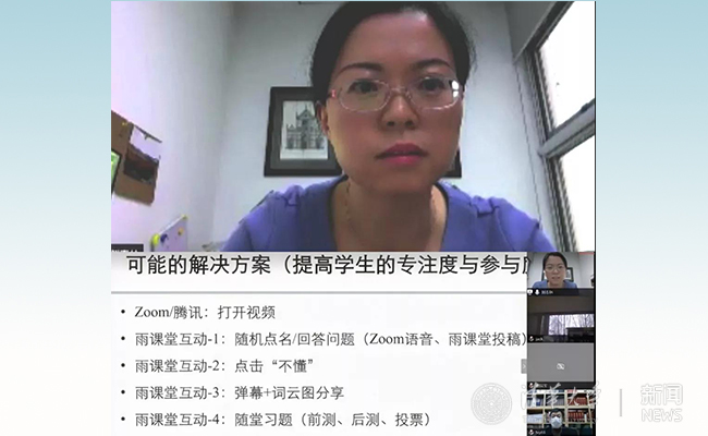 博士生雷潞瑨作为助教代表分享了服务在线教学的实践。她表示,助教在课程中需要扮演好两个角色,一是辅助教学,运用好协同教师和视频会议主持人的身份,及时收集同学们的问题反馈给老师;二是作为学生的身份,及时向老师反映教学进度等。